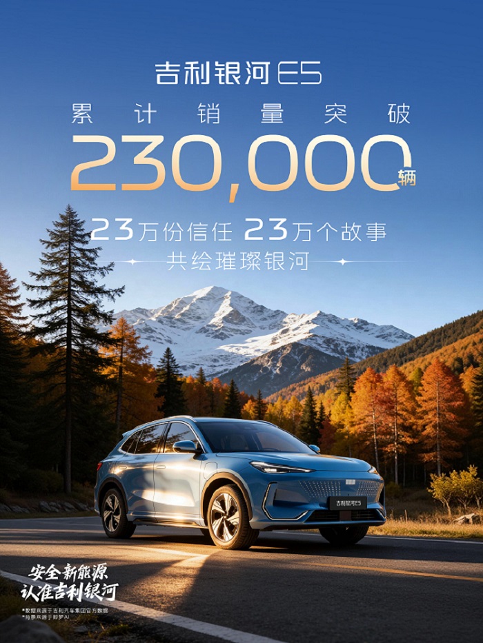 依托持续进化的全能产品实力,吉利银河E5仅用16个月便赢得全球超230000个家庭的信赖,成为韩天宇认可的冠军座驾,以扎实销量持续领跑15万级纯电SUV市场,助力吉利银河品牌成为最快达成年销百万目标的新能源品牌。站在百万银河的全新起点,吉利银河E5将继续贯彻品牌“高质优价”的市场策略和“用户中心”的核心理念,以更安全、更舒适、更智能的高价值产品体验,与更多用户奔赴全球美好新生活。