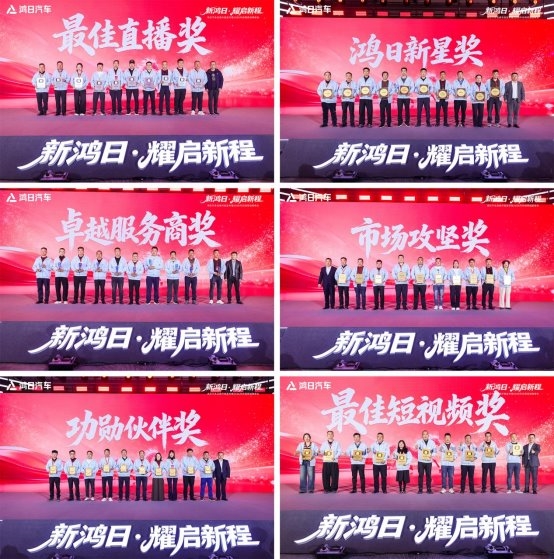 在热烈的氛围中,本次大会迎来最令人激动的环节——鸿日汽车2025年度奖励颁奖典礼!本次颁奖盛典,设立了最佳短视频奖、最佳直播奖、鸿日新星奖、卓越服务商奖、市场攻坚奖、功勋伙伴奖等多个奖项,以表彰2025年在市场推广方面表现出色的运营商伙伴,全体与会人员共同见证了这一荣耀时刻,充分彰显出鸿日对于运营商合作伙伴的重视和感激之情。